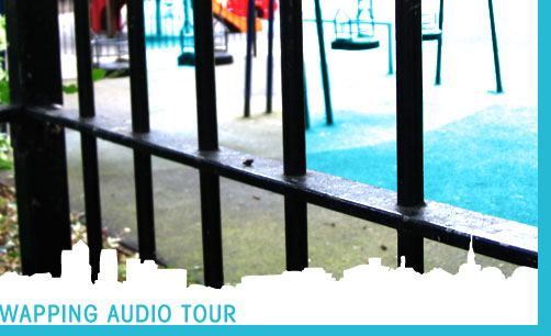Wapping:audio has been created by a group of international theatre makers, with an interest in walking through cities and the stories areas invite by their history, location and environment. The artists alternated between uncovering the existing history of this part of the docklands and creating their own through writing stories, staging a wake, talking to the people who live in the area and guiding tourists from the records of their walks.